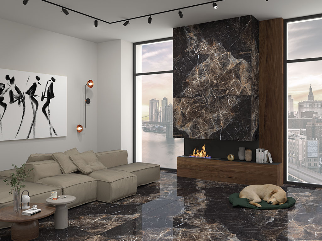 Керамогранит 160x80 9мм Regal Caffe Moka суперполированная черный Gravita