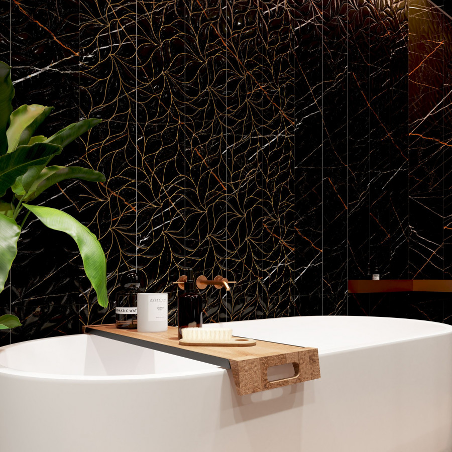 Плитка Black & Gold Struttura облицовочная 70x24 глянцевая Eletto Ceramica