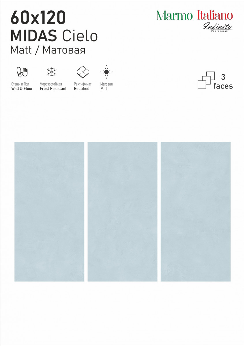 Керамогранит 120x60 9мм матовая Midas Cielo Matt универсальная Infinity Ceramica