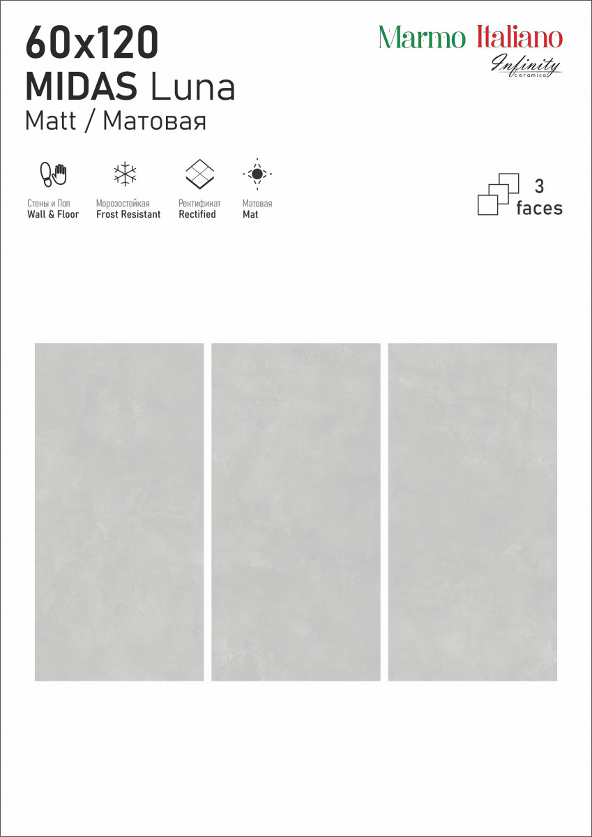 Керамогранит 120x60 9мм матовая Midas Luna Matt универсальная Infinity Ceramica