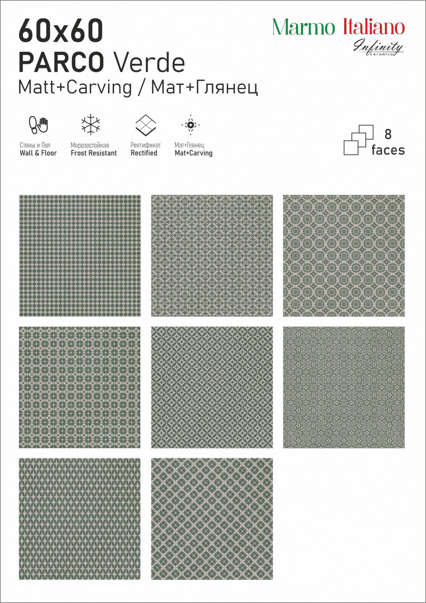 Керамогранит 60x60 9мм матовая Parco Verde Carving универсальная Infinity Ceramica