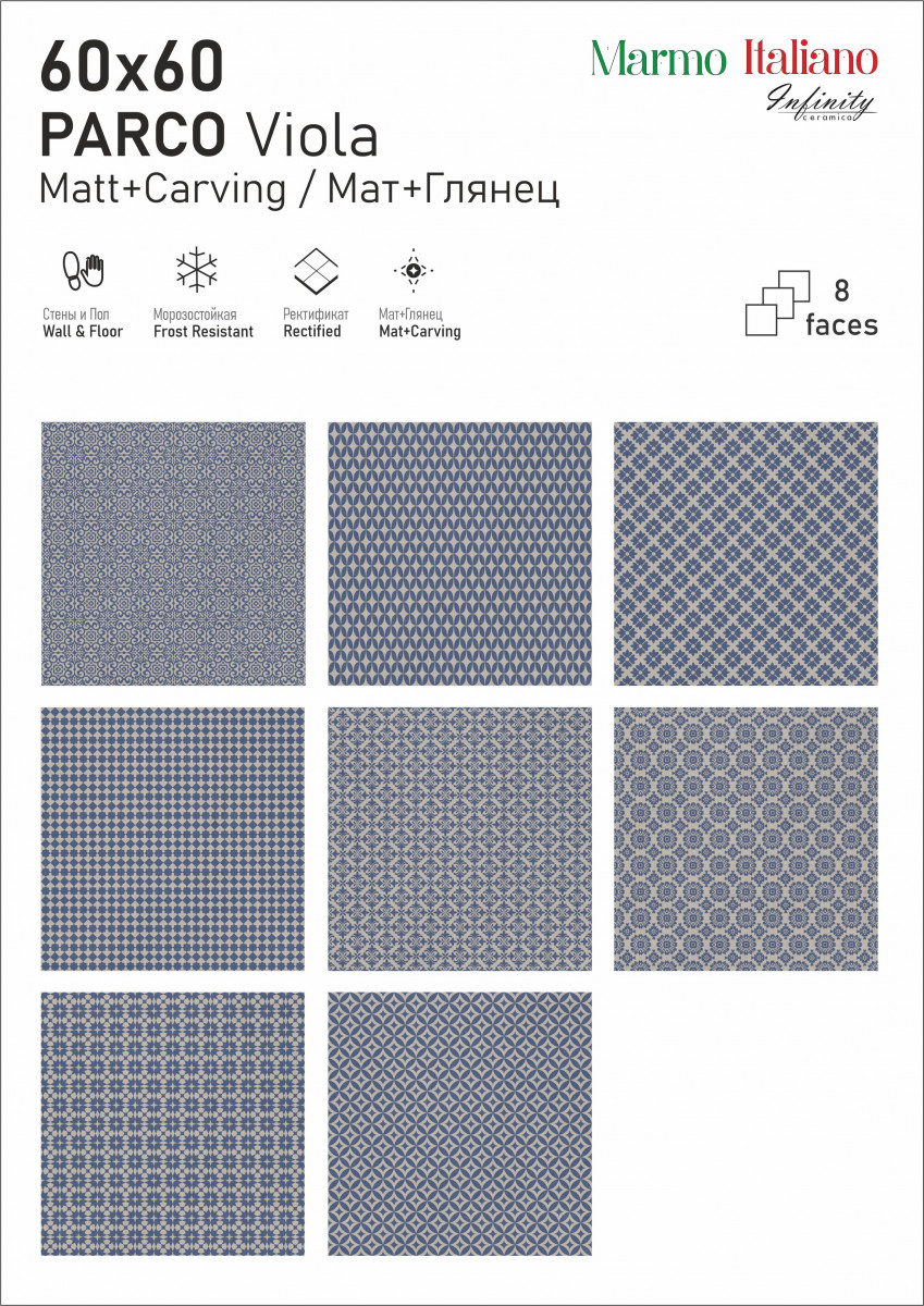 Керамогранит 60x60 9мм матовая Parco Viola Carving универсальная Infinity Ceramica