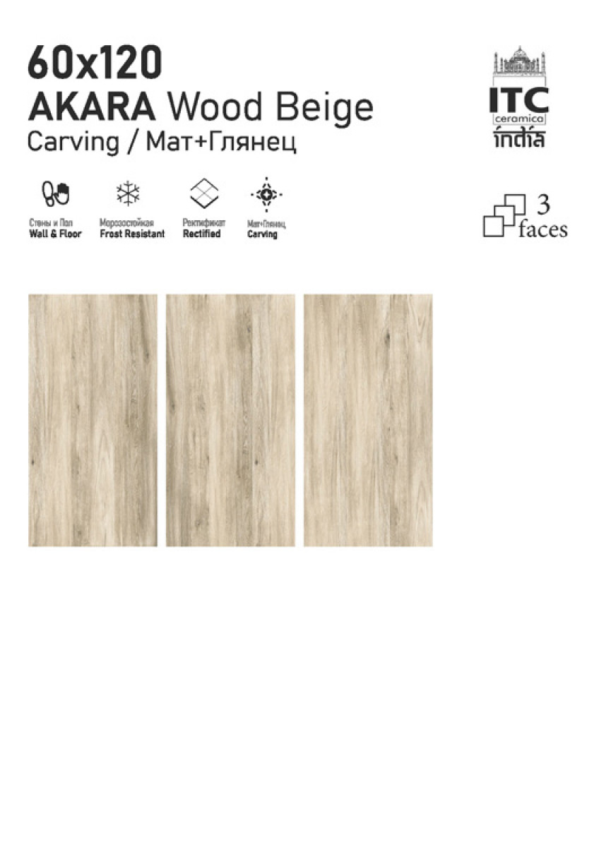 Керамогранит 120x60 9мм матовая Akara Wood Beige Carving универсальная ITC India