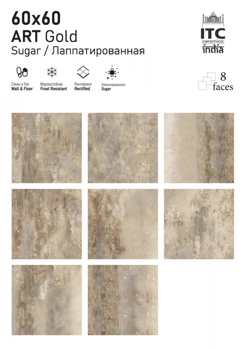 Керамогранит 60x60 матовая Art Gold Sugar универсальная ITC India