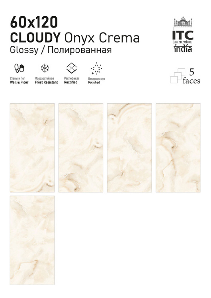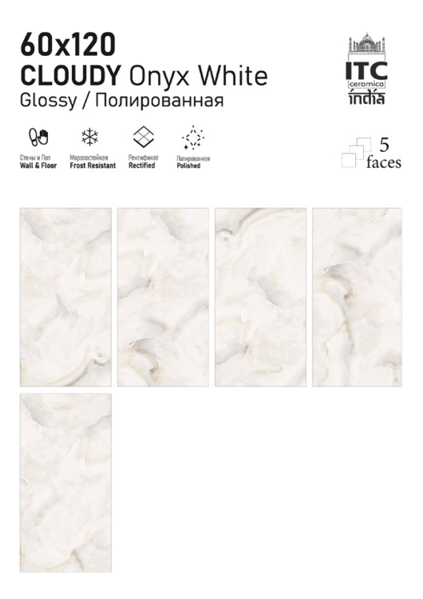 Керамогранит 120x60 Cloudy Onyx Sky Glossy универсальная ITC India