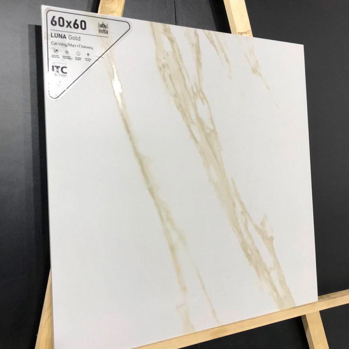 Керамогранит 60x60 8.7мм матовая Luna Gold Carving универсальная ITC India