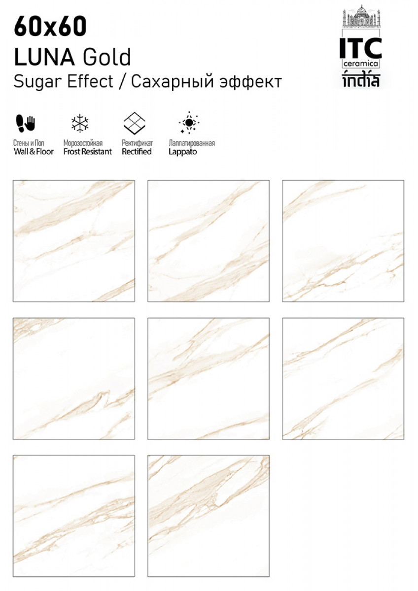 Керамогранит 60x60 Luna Gold Glossy универсальная ITC India