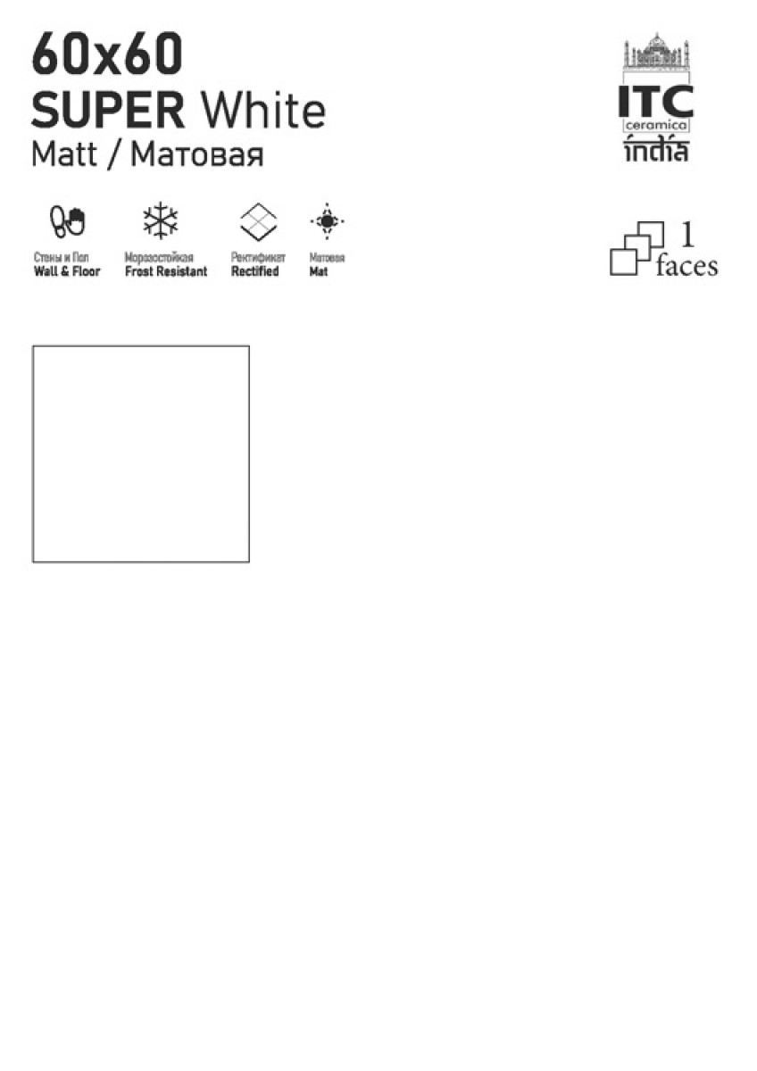 Керамогранит 60x60 8.7мм матовая Super White Satin Matt универсальная ITC India