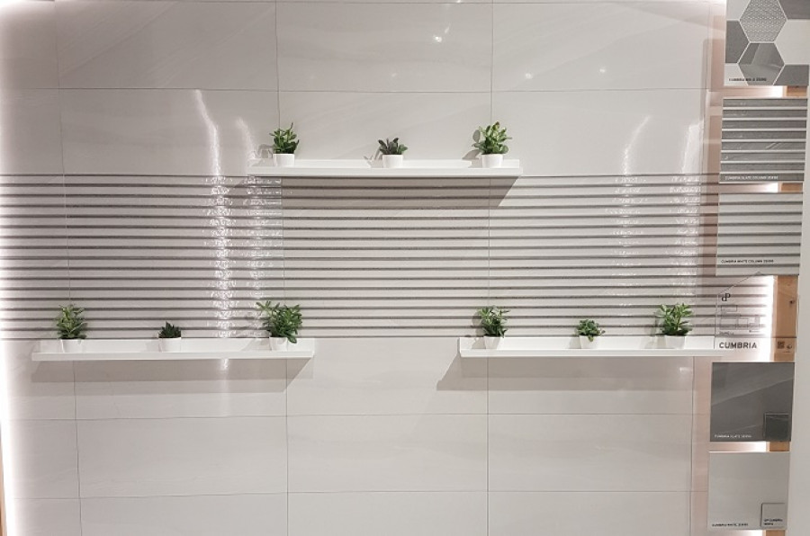 90x35 настенная Cumbria White Column рельефная глянцевая светло-cерый