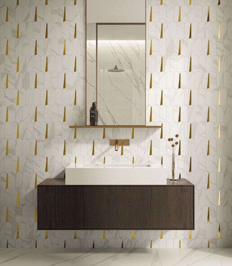 36x33 Metropolis Calacatta Mosaico Elegant 600110000948 микс белый мрамор, с золотом
