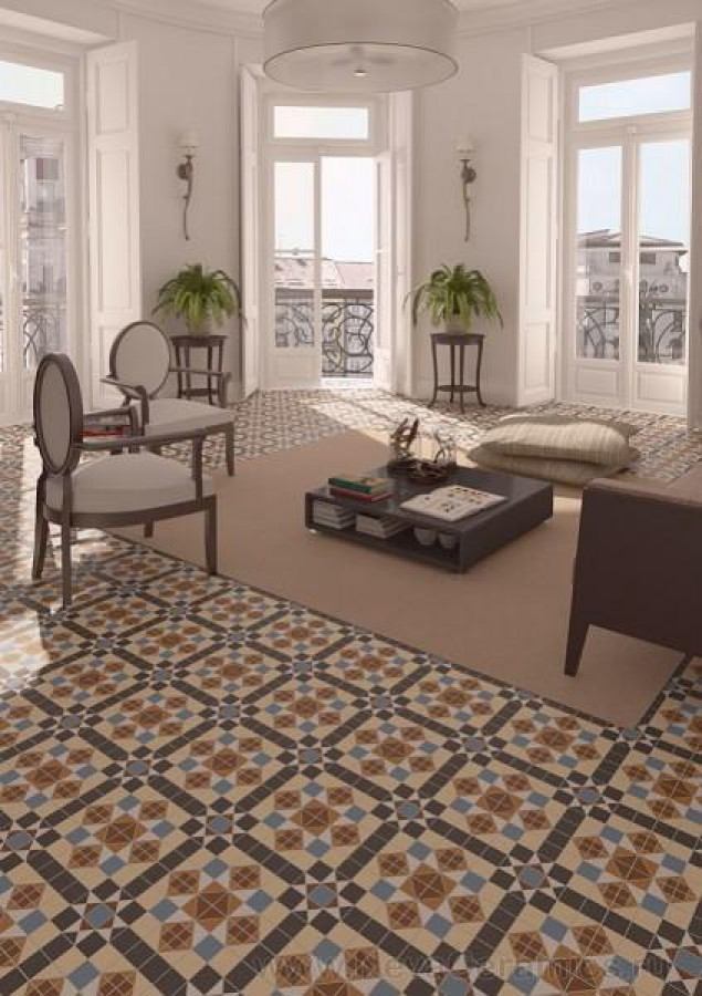 Плитка 15x15 Cantonera Basildon Natural Matt Rett Barnet матовая коричневый орнамент Vives