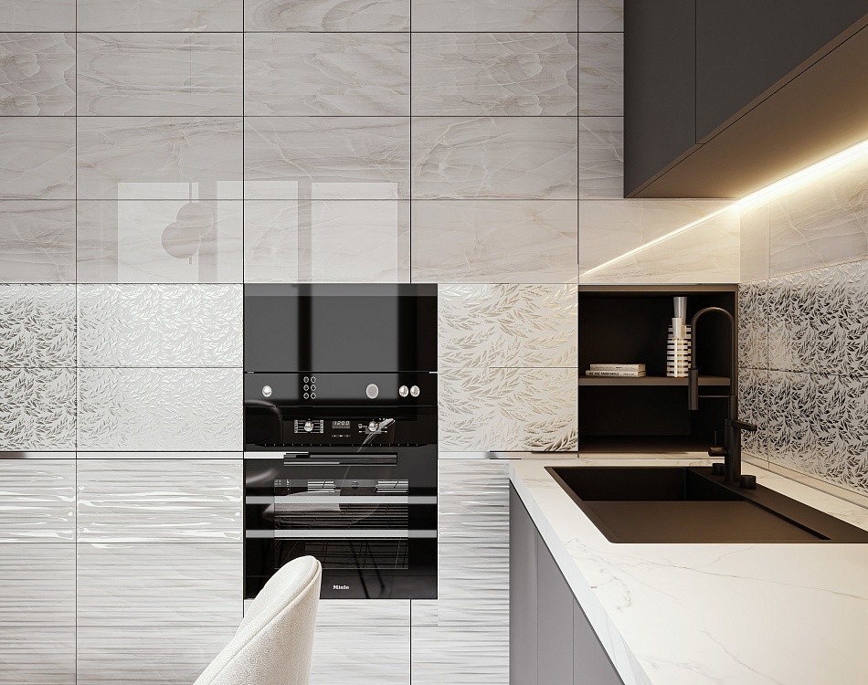 50x25 Палермо настенная светлая рельеф глянцевая белый