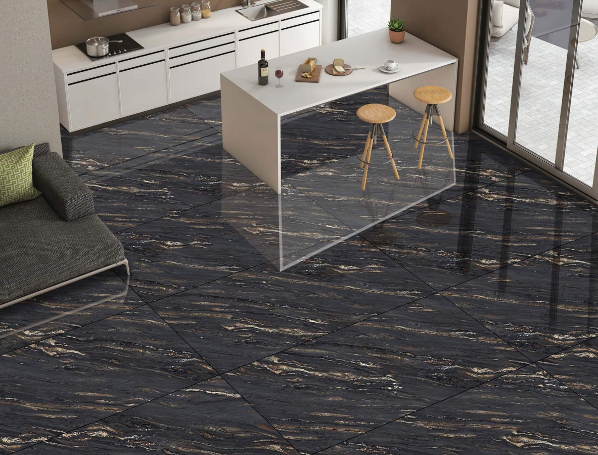Керамогранит 120x60 Murad Brown High Glos См 9мм супер глянец черный A-Ceramica