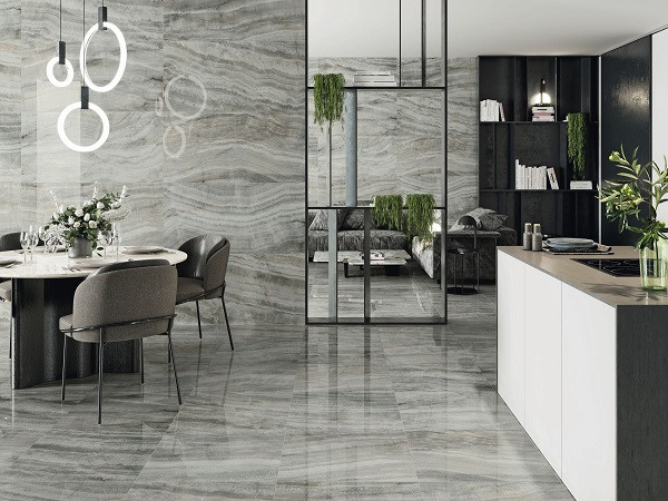 Керамогранит 260x120 Padova Azzurro Pulido См глянцевая серый Baldocer