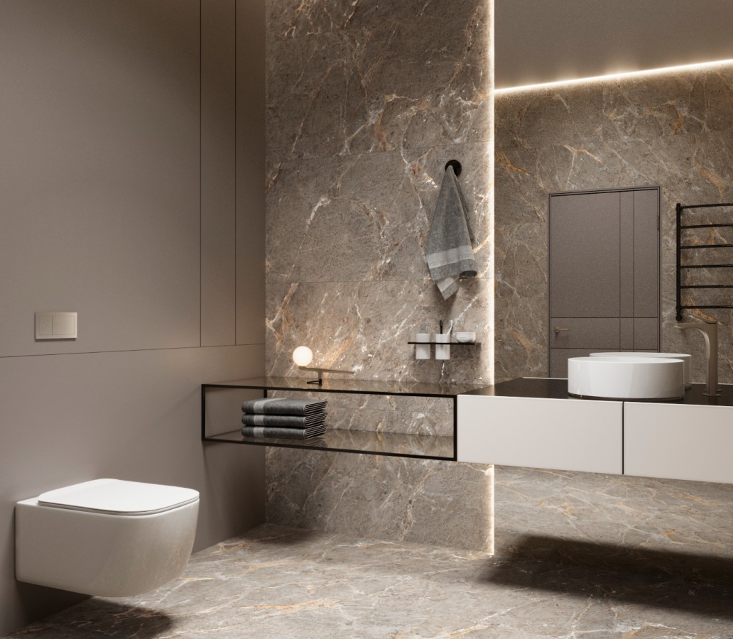 Керамогранит 120x60 8мм матовая с глянцевым эффектом GI8006-B Royal Grey серый камень Arcadia Ceramica