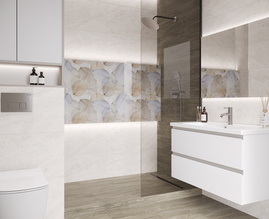 Плитка настенная 80x40 крема декор OS A401 48000R обрезная Уффици глянцевая глазурованная Laparet