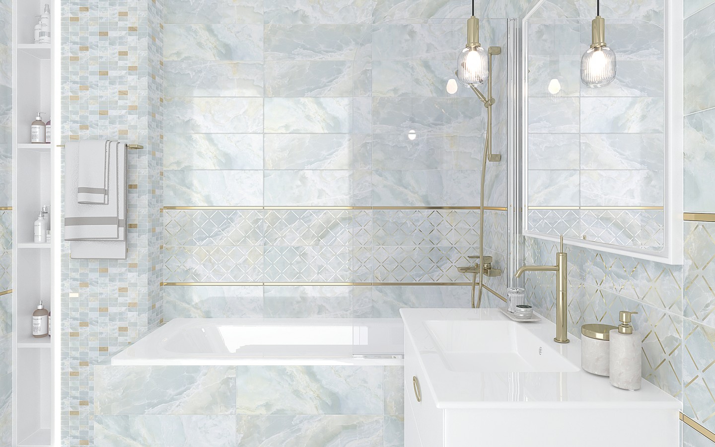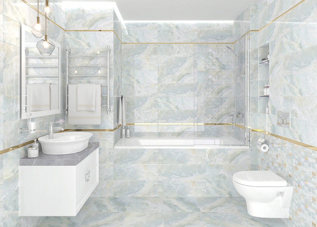 Мозаика 60x20 Eden Декор мозаичный светло-голубой золото MM60156 глазурованная глянцевая Laparet
