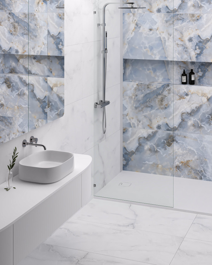 Lunarossa Statuario Mercury Satin сатинированная с карвингом 120x60 9мм