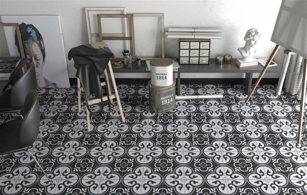 Плитка Yurtbay 20x20 Viola Black Glzportl S17611.6 матовая черно-белый краска, штукатурка 9мм
