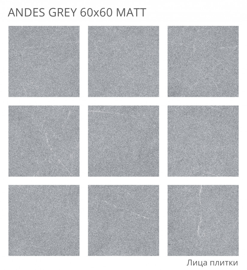 Керамогранит Rizzi Andes Grey Matt матовая 60x60 8мм Staro