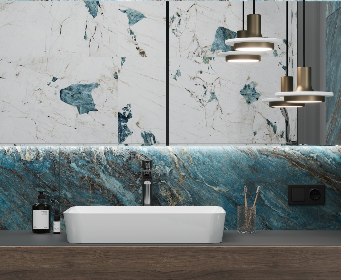 Плитка напольная керамогранит 120x60 бирюзовый полу блестящий Бим Туркуаз лаппатированная шайн глазурованная Laparet