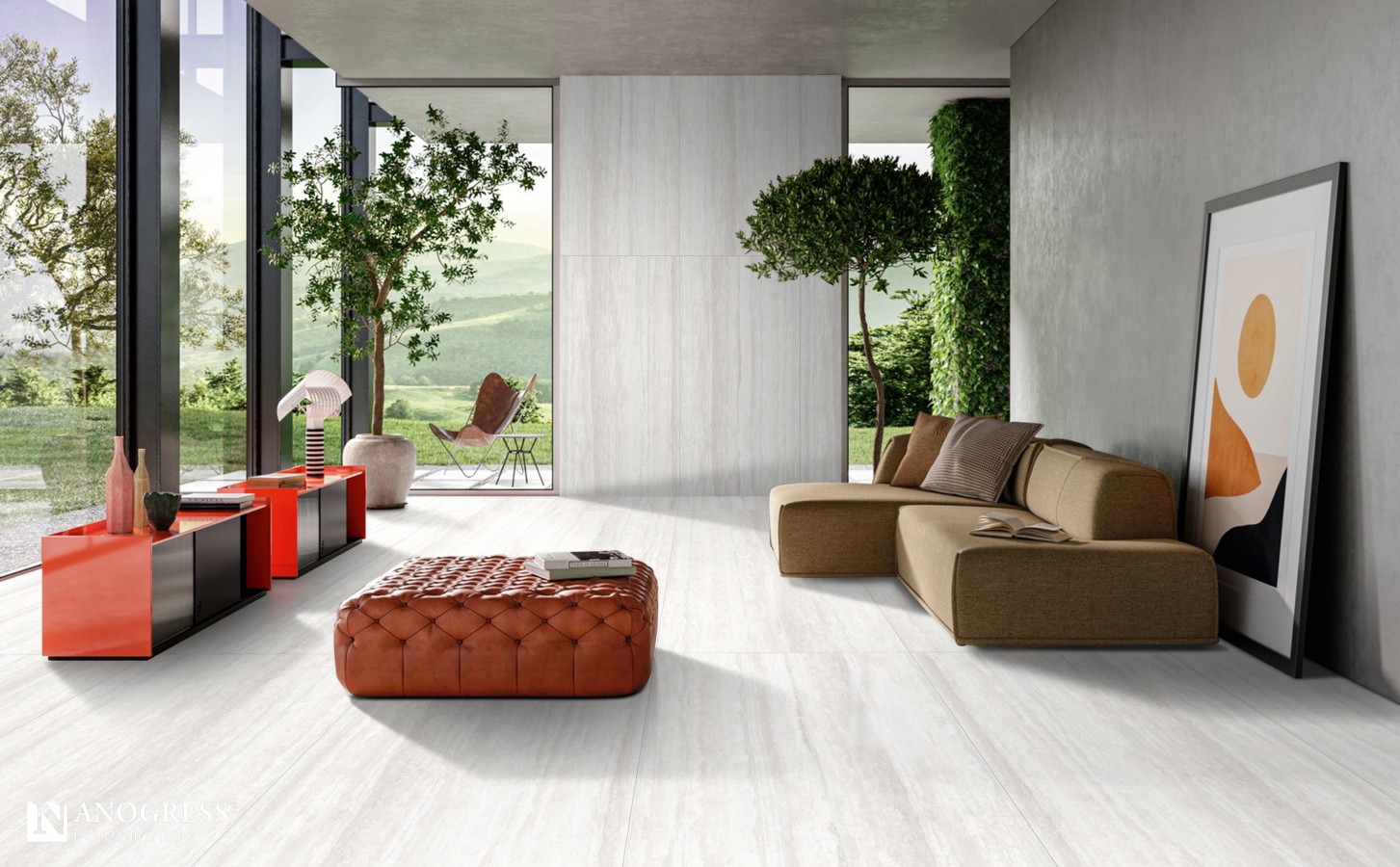 Керамогранит 180x90 Trevi-WR глазурованный под травертин белый 10.5мм Art##0008457 Venis