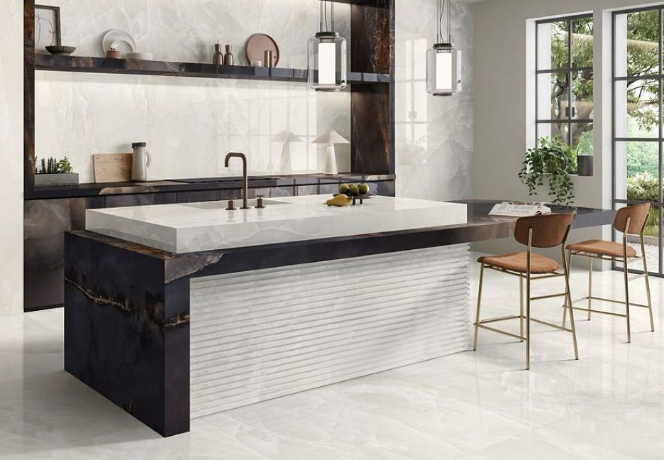 Керамогранит 120x60 Ivory Silktech Tele Di Marmo Onix матовая белый оникс 9.5мм Emil Ceramica