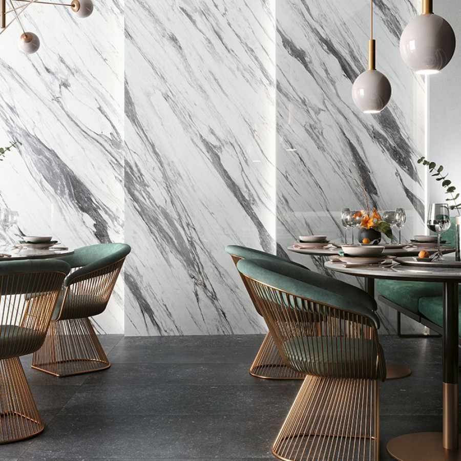 Керамогранит 240x120 Statuario Extra Lucido Cosmopolitan глянцевая белый мрамор 9мм Mirage
