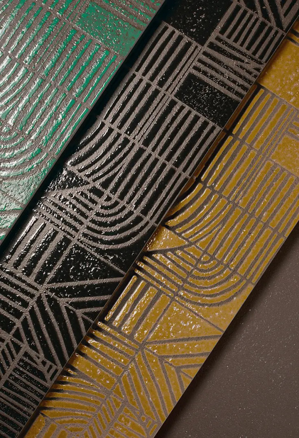 Керамогранит 60x15 Segno Ocra Mater глянцевая желтый узор Mutina