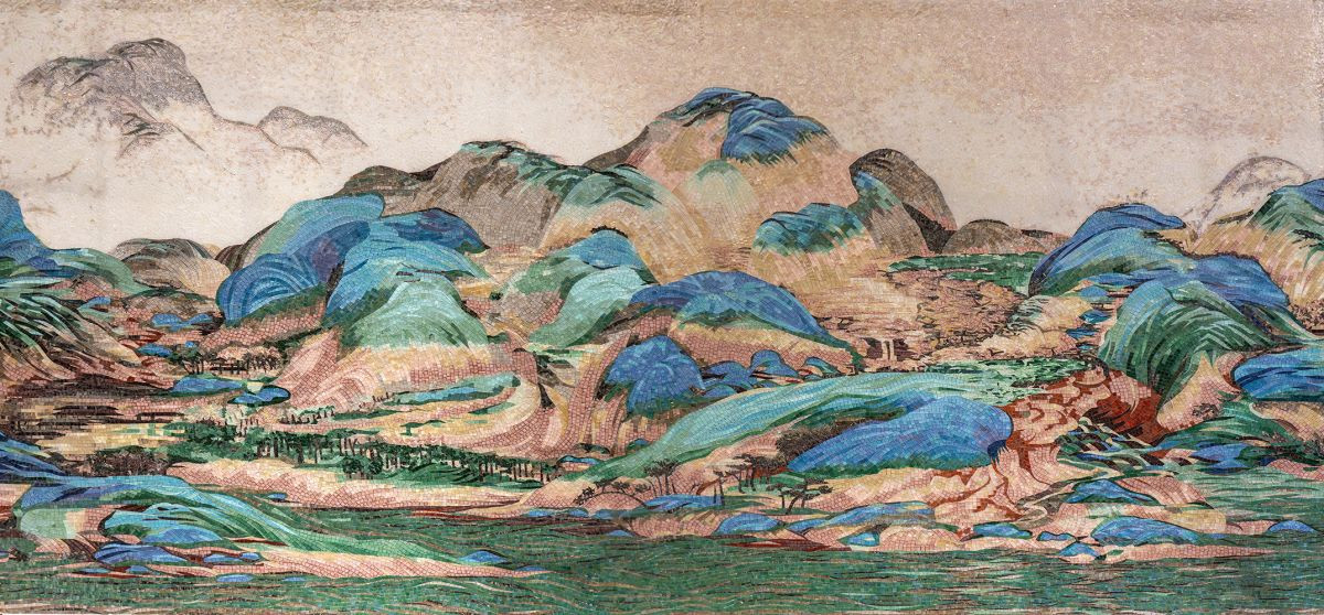 Панно - 1200x268 Размер: 1 См Стеклянная Мозаика Горы И Воды На Тысячу Ли бежевый Art Natura