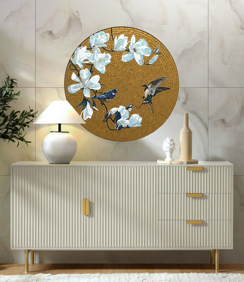 Инкрустация мозаики весеннее 120x120 Солнцестояние золотой Art Natura