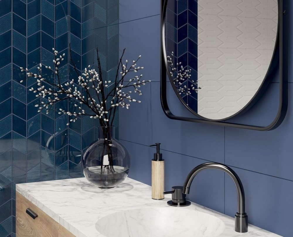 Плитка настенная 75x25 9мм Nightwish Navy Blue Tonal Struktura Rekt матовая Ceramika Paradyz