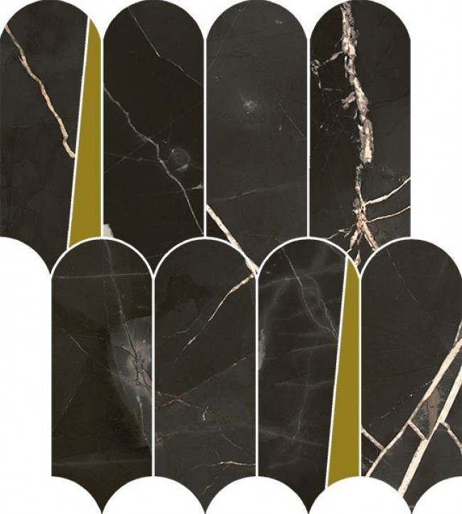 Плитка 36x33 Stellaris Absolut Black Mosaico Elegant 620110000235 микс черный мрамор, с золотом 9мм Италон