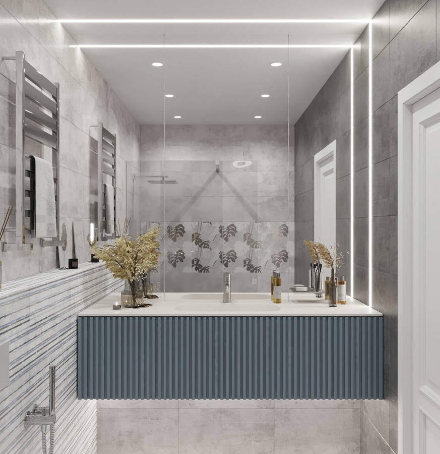Плитка 60x5 Куба бордюр G серая 22шт матовая белый синий Axima